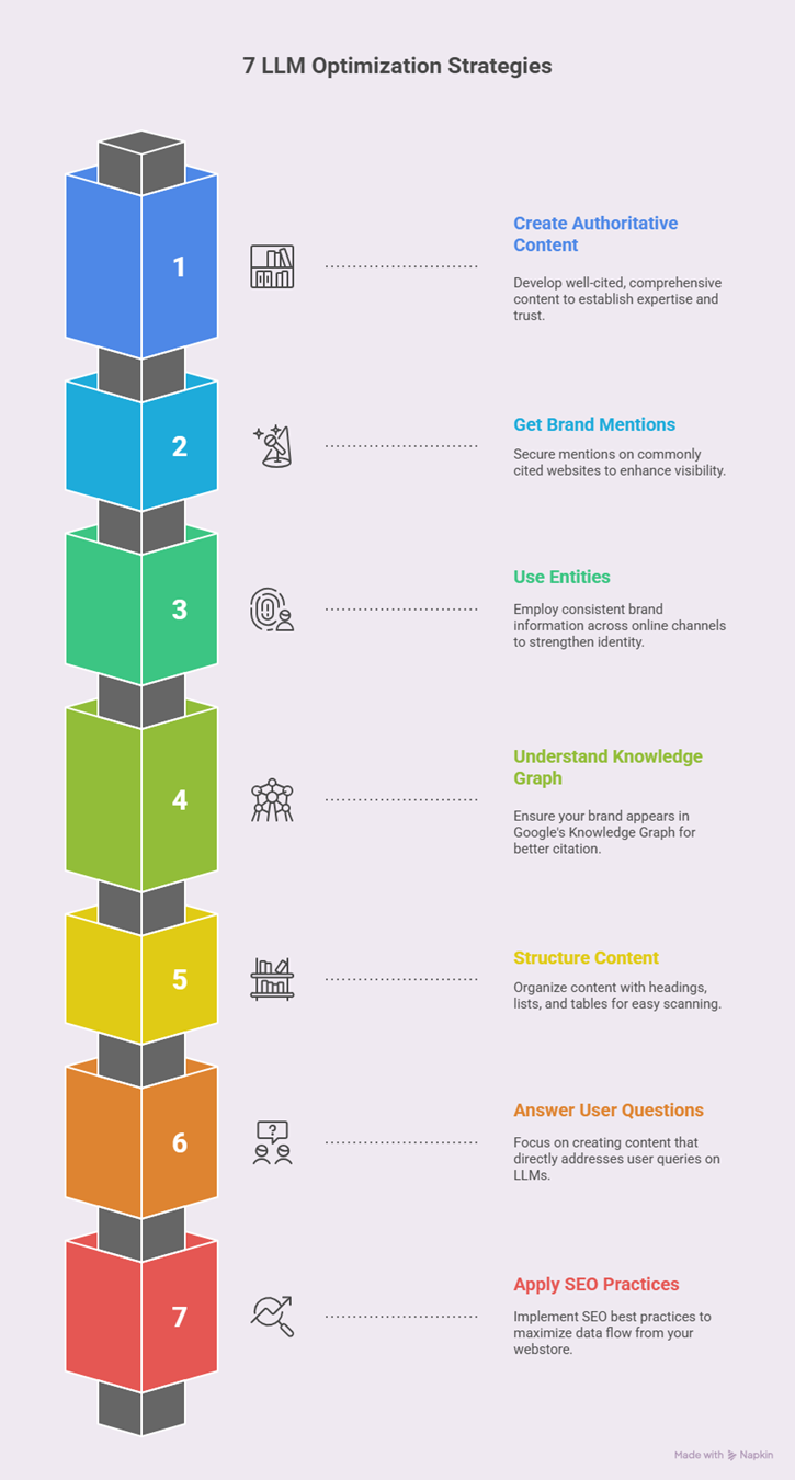 6 practical strategies that you can implement to optimize your webstore for LLMs include: